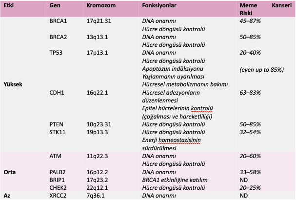 • Kalıtsal BRCA1/2, PALB2, CHEK2, TP53 mutasyonları