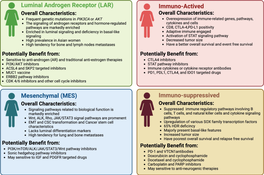 • Luminal Androgen Receptor (LAR): Androjen reseptörü pozitif, hormonal ve hedefe yönelik tedavilere aday grup.